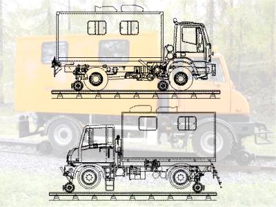 Bench for 4 persons separated from the rerailing equipment box by means of a firm barrier is located in the front part of the body superstructure. Communication with driver is assured by means of intercom or the slide window of the driver's cab.